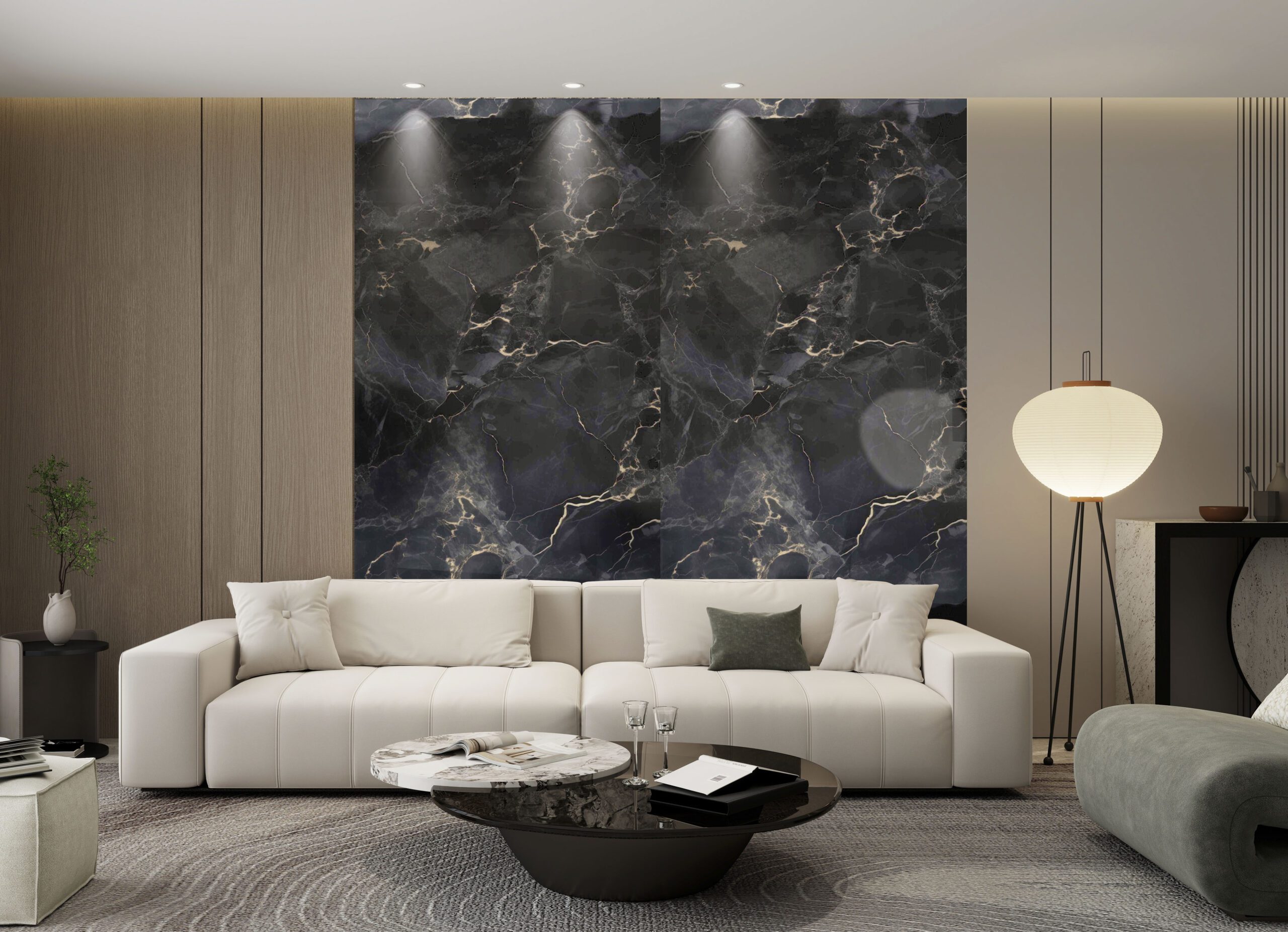 • Nero Portoro-Look: Tiefschwarze Grundfarbe mit markanter, fließender Gold-Maserung