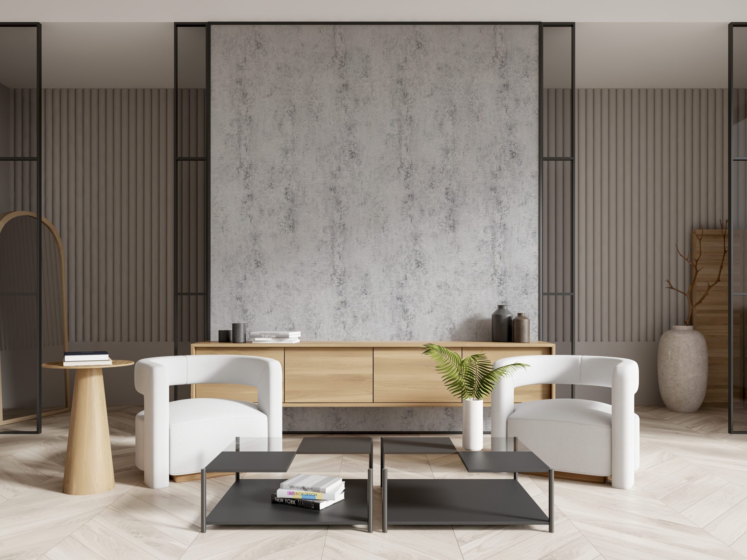 Moderner Urban-Stil trifft Funktion – PVC Wandpaneel Zement-Beton-Optik Grau